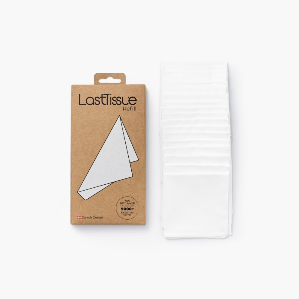 Vos mouchoirs en tissu auront une durée de vie d’environ 510 lavages chacun, tandis que l'étui peut avoir une durée de vie encore plus longue. Vous pouvez trouver des recharges ici. Au total, le LastTissue Pack remplacera environ plus de 3.100 mouchoirs à usage unique, et la LastTissue Box peut remplacer jusqu'à plus de 9.000 mouchoirs.