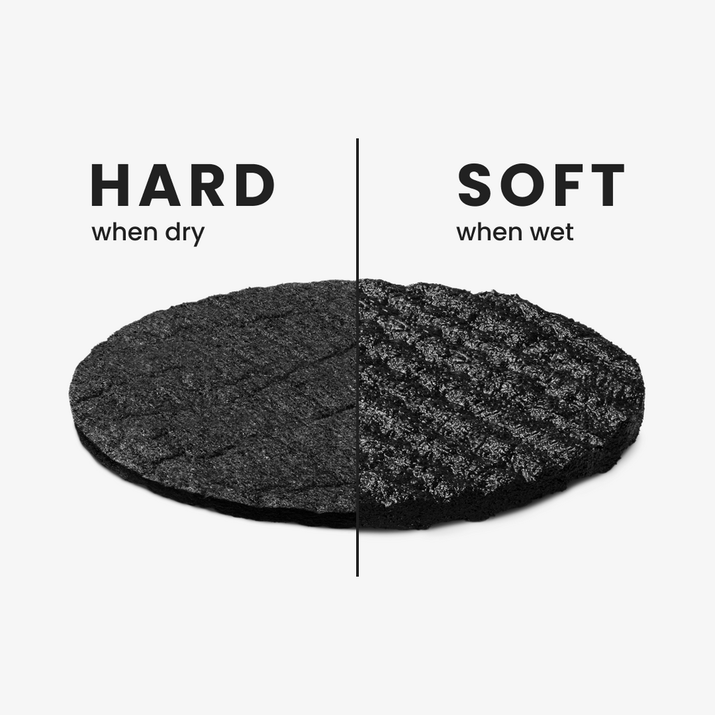 LastRound ist von Natur aus recht fest, aber es wird weich und lässt sich wunderbar verwenden, wenn du etwas Wasser hinzufügst. Drücke das überschüssige Wasser aus, bevor du den Entferner, das Gesichtswasser oder andere Produkte hinzufügst (keine Sorge, sie werden nicht verwässert, und das Pad absorbiert genau die richtige Menge).