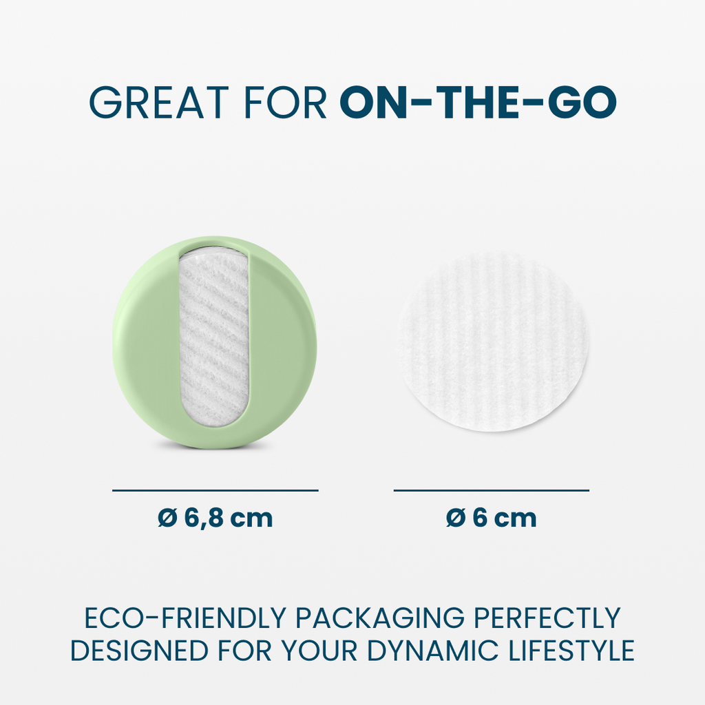 LastRound Original und Pro: Die Pads messen 6 cm, und der Behälter ist 6,7 x 3 cm groß.